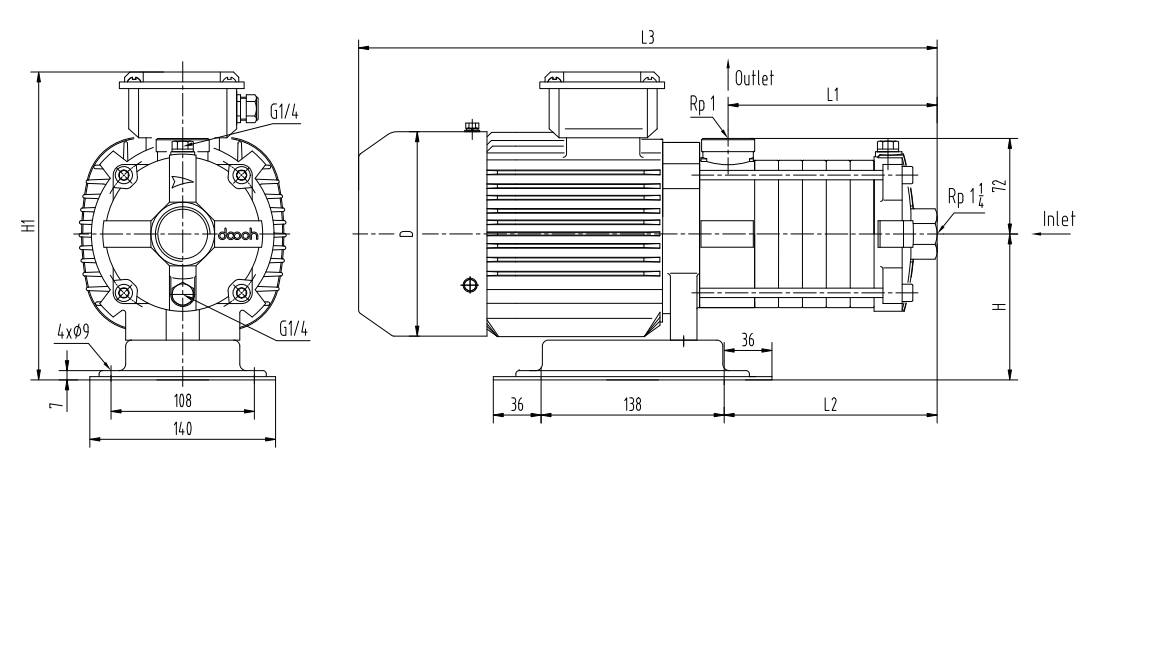 DHF pump is used for water supply systems, circulation systems, liquid pressurization for industrial systems;Horizontal multi-stage non-self-priming pump,with long shaft motor all water contact parts are made of stainless steel;Low noise,small vibration due to the simple structure and high balance accuracy of the rotor components.It adopts mechanical seal to ensure no leakage, standardized design and good equipment versatility